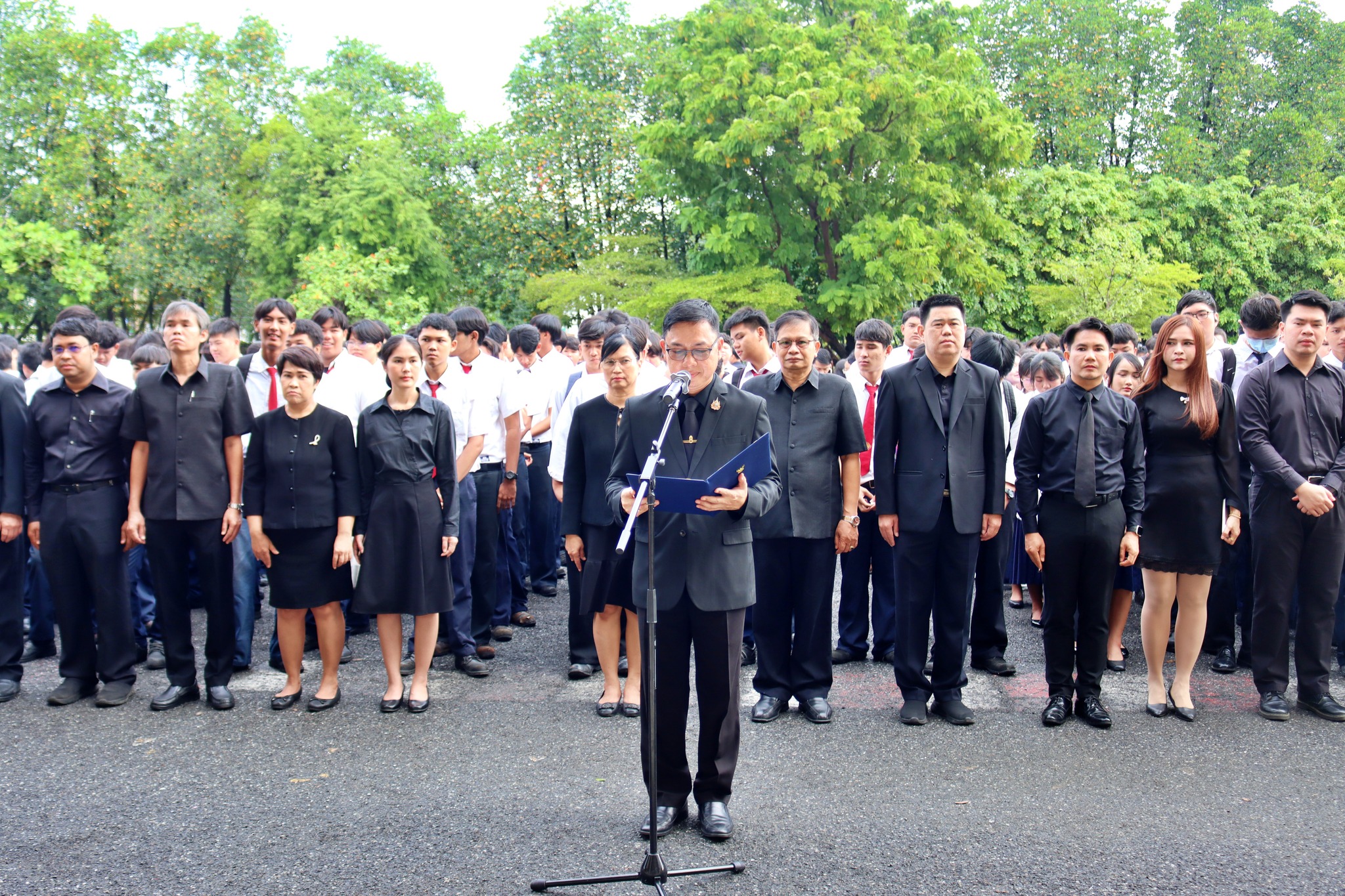 ดร.สุรินทร์ บุญสนอง ผู้อำนวยการวิทยาลัยเทคนิคสมุทรปราการ พร้อมด้วยคณะผู้บริหาร คณะครู บุคลากรทางการศึกษา และนักเรียน นักศึกษา ได้ร่วมประกอบพิธีแสดงความอาลัยและถวายพระเกียรติแด่
